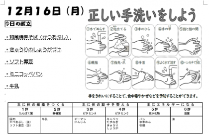 明日の献立は、「冬野菜のカレーライス」、「ブロッコリーとコーンのサラダ」、「黄桃」などです。