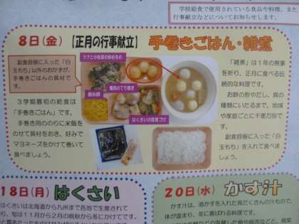 今日の給食「正月行事献立-手巻きごはんと雑煮」