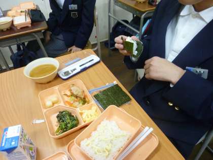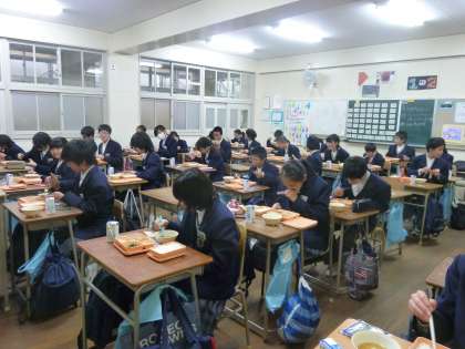 珍しい給食に教室では、楽しそうな声が上がっていました。