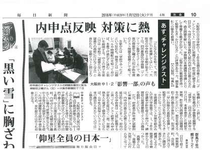 また、今回から高校の内申に結果が反映されることも、新聞報道(写真)などでも扱われていますが、生徒の皆さんには、特別、緊張することなく、普段の実力を発揮して欲しいと思います。