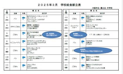ここをクリック➡➡➡ 3月 学校給食献立表
