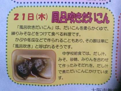 今日は「風呂吹きだいこん」という面白いネーミングの給食料理がでました。