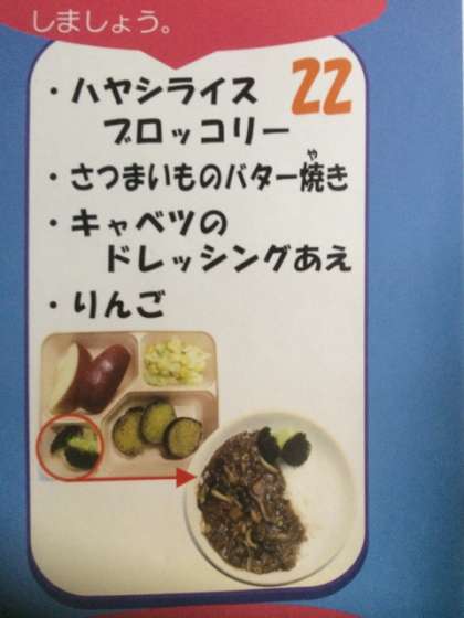 今日の給食「ハヤシライスとさつまいものバター焼き」