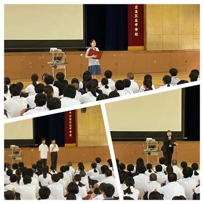 はじめに両校の校長先生・生徒代表の挨拶、各校からの贈呈式がありました。、