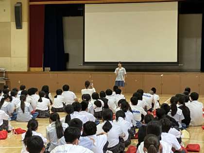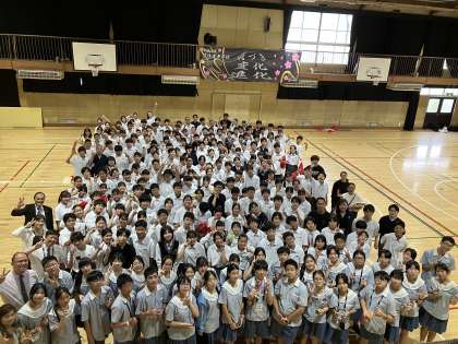 終了後、正徳中学校の代表生徒の方からお礼の言葉がありました。また校長先生から記念品の贈呈がありました。最後に全員で写真を撮りました。