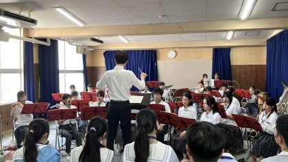 交流会終了後は、なぎなた部、吹奏楽部の見学をしてもらいました。吹奏楽部は台湾で流行っているYOASOBIのメドレーをはじめ、4曲を演奏しました。温かい拍手をいただきました。