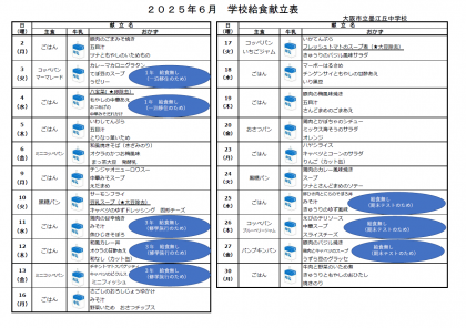 6月の給食献立表6月 学校給食献立表 ここをクリック➡➡➡ 6月 学校給食献立表をご活用ください(ホームページ右側の「食育つうしん」にも掲載)。