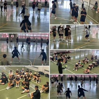ドッヂボール班は白熱のクラス対抗戦、大いに盛り上がっています。先生も入って、楽しんでいます。