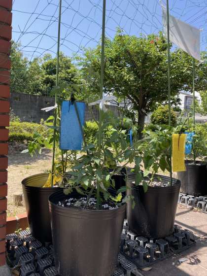 本日も森本さんがふらっと来校。伸びてきた中玉トマトを見て、にっこり一言。