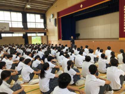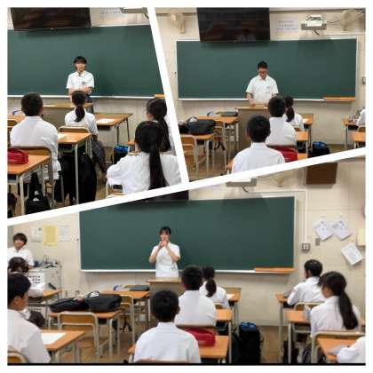 本日朝は教育自習の先生のお別れの挨拶、バドミントン部の表彰、校長先生の話がありました。最後に3年生が中心に2年間取り組んできた子ども食堂&寺子屋ボランティアについて1、2年生に呼びかけをし、参加したい人は放課後に集まるように伝えました。