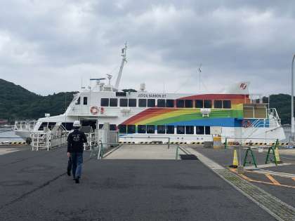 このあと、生徒たちは高速船「レインボージェット」に乗り、隠岐の島を目指します。