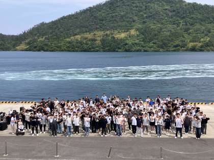 雄大な自然をバックに撮影しました。 今からバスに乗って島を巡ります。