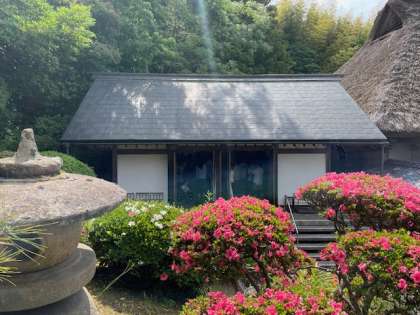 参道の神門をくぐると右側にある八百(やお)杉は樹齢約2000年と言われ、伝説では不死となった八百比丘尼が植えたとされます。根本の洞穴には大蛇が閉じ込められ、木の中から大蛇の大いびきが聞こえてくるとも伝えられています。