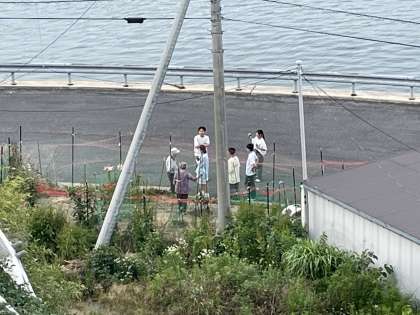 土産物店をめぐる足取りの途中で、ある生徒たちは*島民の方と立ち話をしていました。*