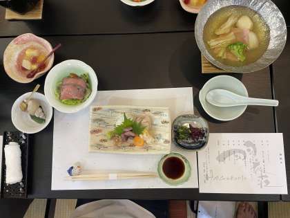 本日、各クラスは分宿先にて、*隠岐の島町が誇る海の幸・山の幸を味わう時間*に入りました。