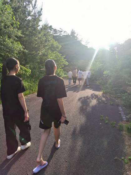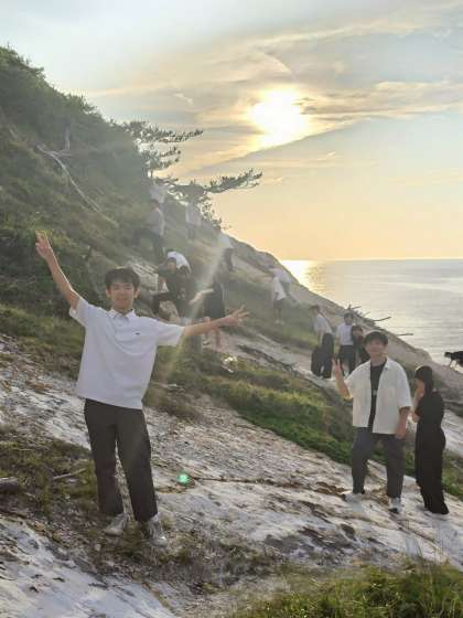 3年4組の生徒たちは、夕食前のひととき、宿のそばに広がる砂浜へ足を運びました。