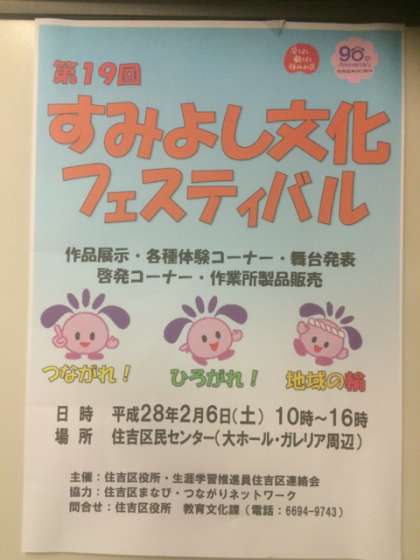 今日、2月6日(土)、住吉区民センター大ホールでは「すみよし文化フェスティバル」が開催されています。