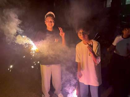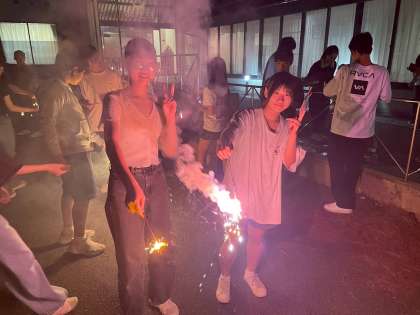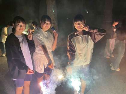 *生徒たちは声を上げすぎず、火の軌道を目で追い、静かに手を動かしながら、笑い合っていました。*