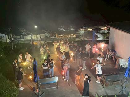 その後はみんなで花火、美しい海をバックにみんなで楽しいひと時を過ごしました。