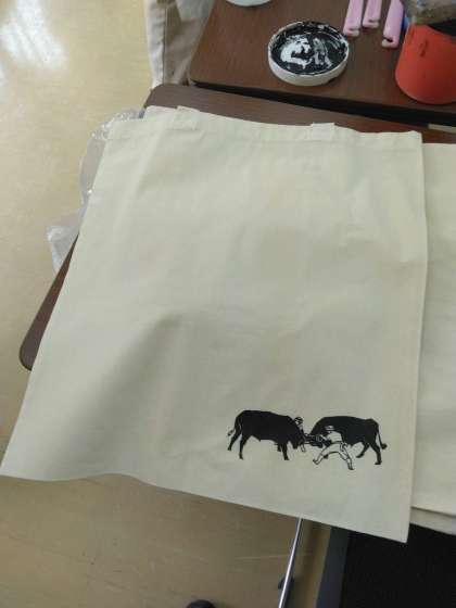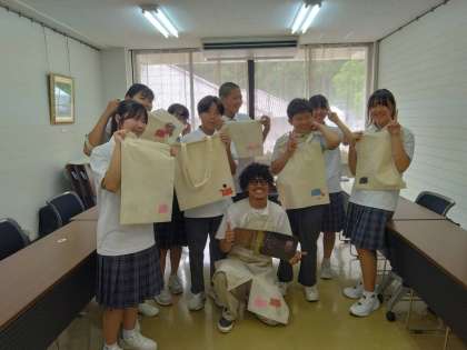 プレゼンチームは、オリジナルトートバックづくりも体験しました。