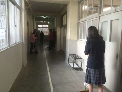 私立高校入試が始まった3年生ですが、学校ではすでに受験を終えた人たちや今回、受験のない3年生が、人の少ない機会をみて、清掃活動に取り組んでくれました。