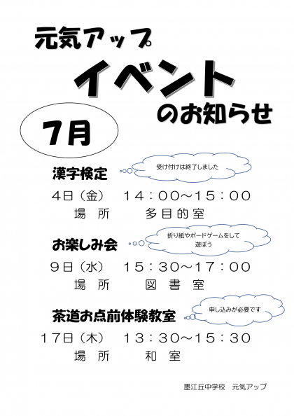 なお、茶道お点前体験教室の申込用紙は明日(7月1日)配布予定です。