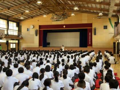 本日体育館で全校生徒を対象にいのちの講話・コンサートを行いました。