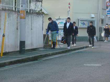 その一つ、学校管理作業員さんの仕事は、毎朝、7時半過ぎの校内外の美化作業から始まります。生徒の皆さんと朝の挨拶を交わしながらの早朝作業です。