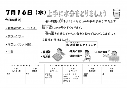 明日夏休み前最後の献立は、「さけのつけ焼き」、「みそ汁」、「とうがんの煮もの」などです。
