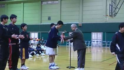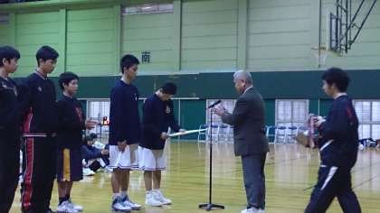 本校男子バスケットボール部はこの大会で、準決勝戦、巽中に55−43で、決勝戦、淀川中に55−42で連続して勝利を収め、見事、優勝を果たしました。