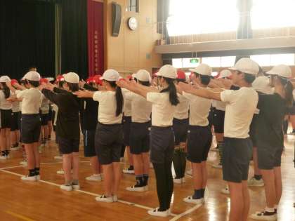墨江小「中学校入学準備」集団行動を学んでいます。