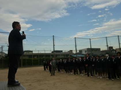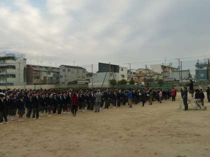 インフルエンザの流行も下火になり、今日もグランドで2月の全校集会を行いました。