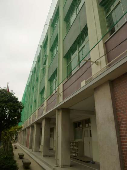 工事のための足場も取り払われ、運動場側の防球ネットも、新しい丈夫なものに架け替えられました。