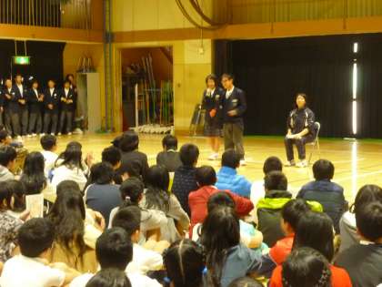 コントを交えた、中学校生活や生徒会活動の説明には、笑いも起こり、興味津々で見いってくれました。