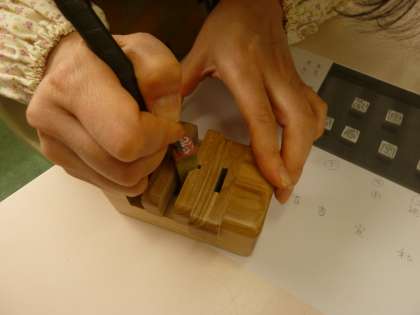 元気アップ学習会では、ボランティアの皆さんを対象に、篆刻(てんこく)の製作学習会を行いました。