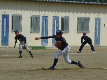 相手校に先取点を入れられ、本校は、投打にそつなく臨んだのですが、相手投手に抑えられ、連打がでず、0−3で敗戦となりました。
