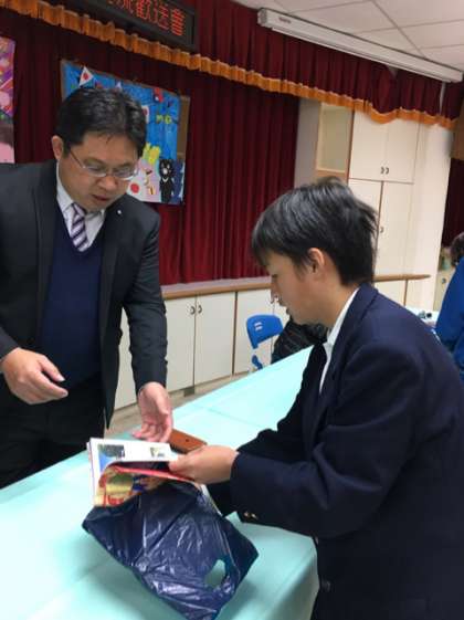 また、ここでは本校からの寄贈図書を披露し、英語で説明してお渡ししました。