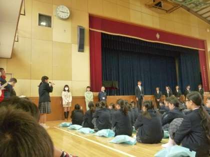 そして式では、代表の先生のあいさつと生徒会長の歓迎の挨拶がありました。