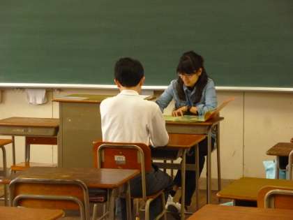 教室では、担任の先生との話し合いでは、打ち解けて話す場面も多く見られます。