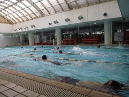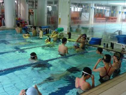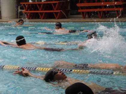 水泳部では、5月からの学校プールでの屋外練習に備えて、冬場から、室内練習に毎週、取り組んできました。