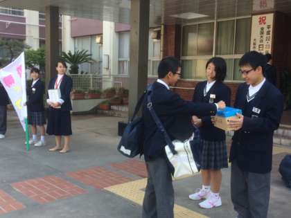 生徒会では、重大な被害が発生しています、熊本、九州での地震災害を受けて、緊急の募金活動を始めました。