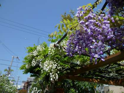 学校園の藤棚のフジが、見事に見ごろを迎えています。