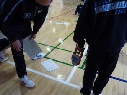 同じく体育館では、握力測定、前屈測定、立ち幅跳びの測定を行いました。