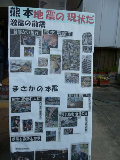 生徒会では、引き続き、熊本の募金活動を行っていますが、こんな掲示板や垂れ幕を作りました。
