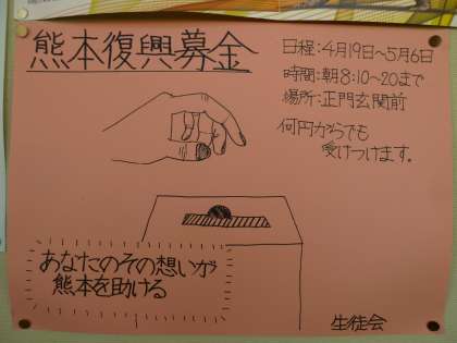 今日の風景4/22 −生徒会「熊本地震救援募金」続いています