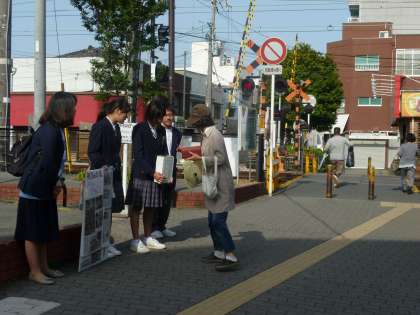 朝、7:50から、生徒会の皆さんは、沢ノ町駅前の東西に分かれて、「熊本支援」の街頭募金を行いました。