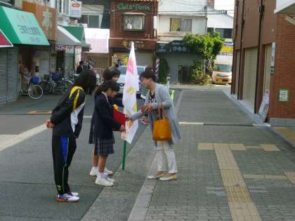 連休の合間、朝のあわただしい時間でしたが、通勤、通学の多くの皆さんが、足を止めて、募金箱に募金を入れてくださいました。