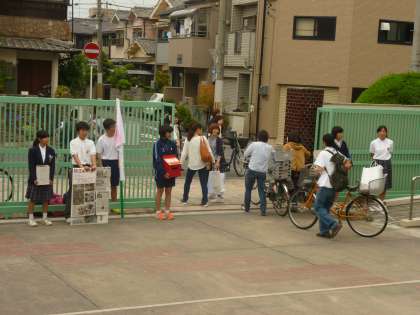 今日の風景5/7− 放課後、生徒会が「熊本支援募金活動」を保護者の皆さんに呼びかけました。