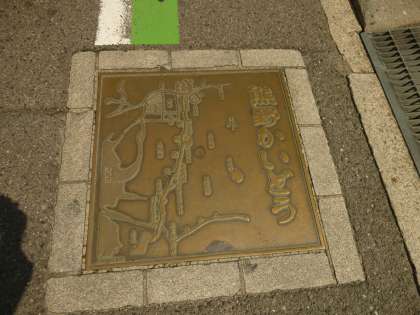 小さな記念碑になった街道地図(写真1)、道路に張り付けられた街道地図(写真2)、そして石の標識です。