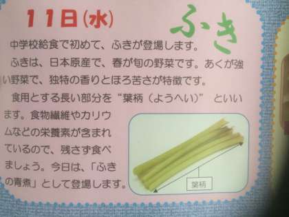 今日の風景5/11 −給食に「ふき」が初登場です。